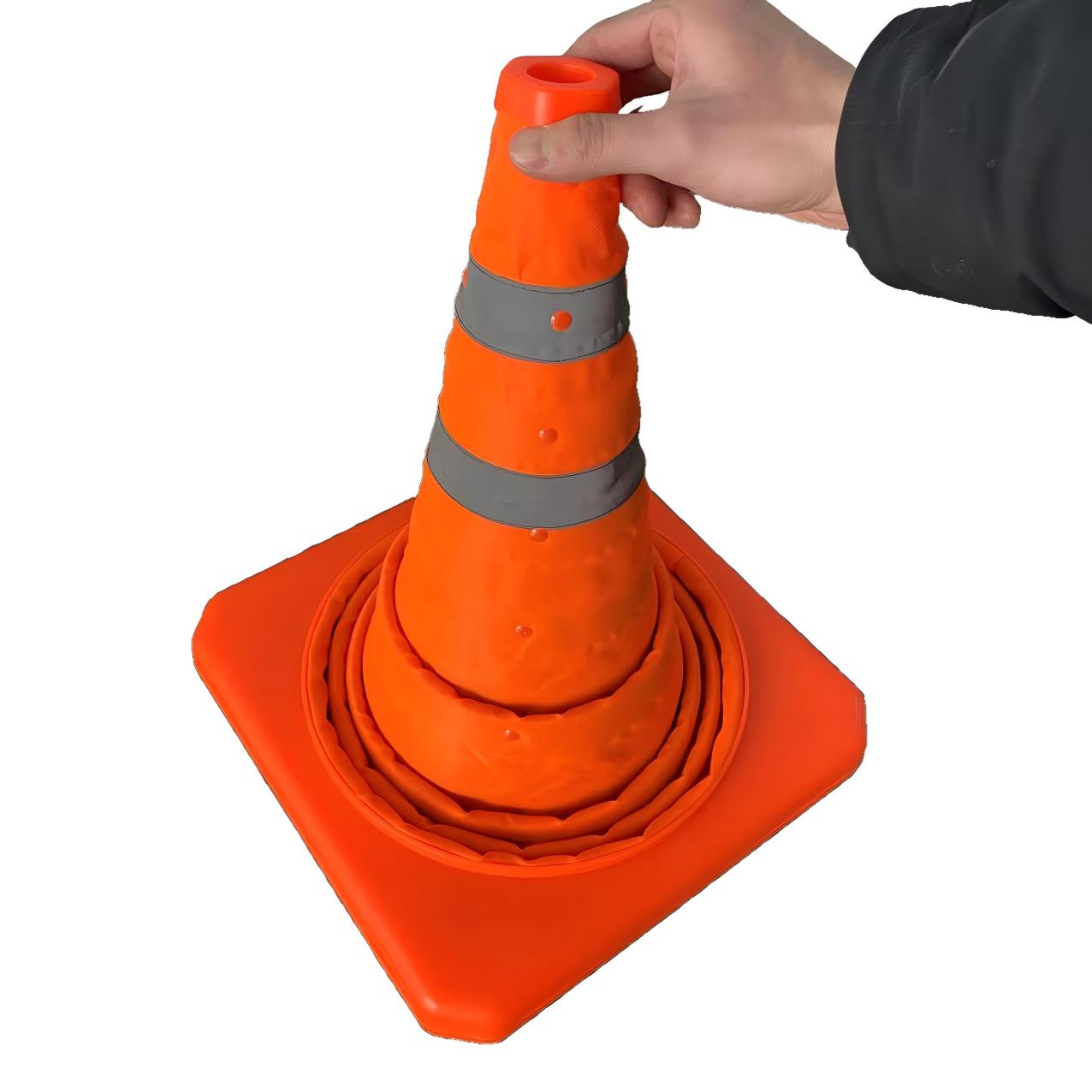 Ob bei Autopannen, zur Absicherung von Baustellen, zur Kennzeichnung von Gefahrenstellen, bei Großveranstaltungen oder als mobiles Verkehrsleitsystem – dieser Verkehrskegel ist in Sekunden aufgebaut und ebenso schnell wieder verstaut.