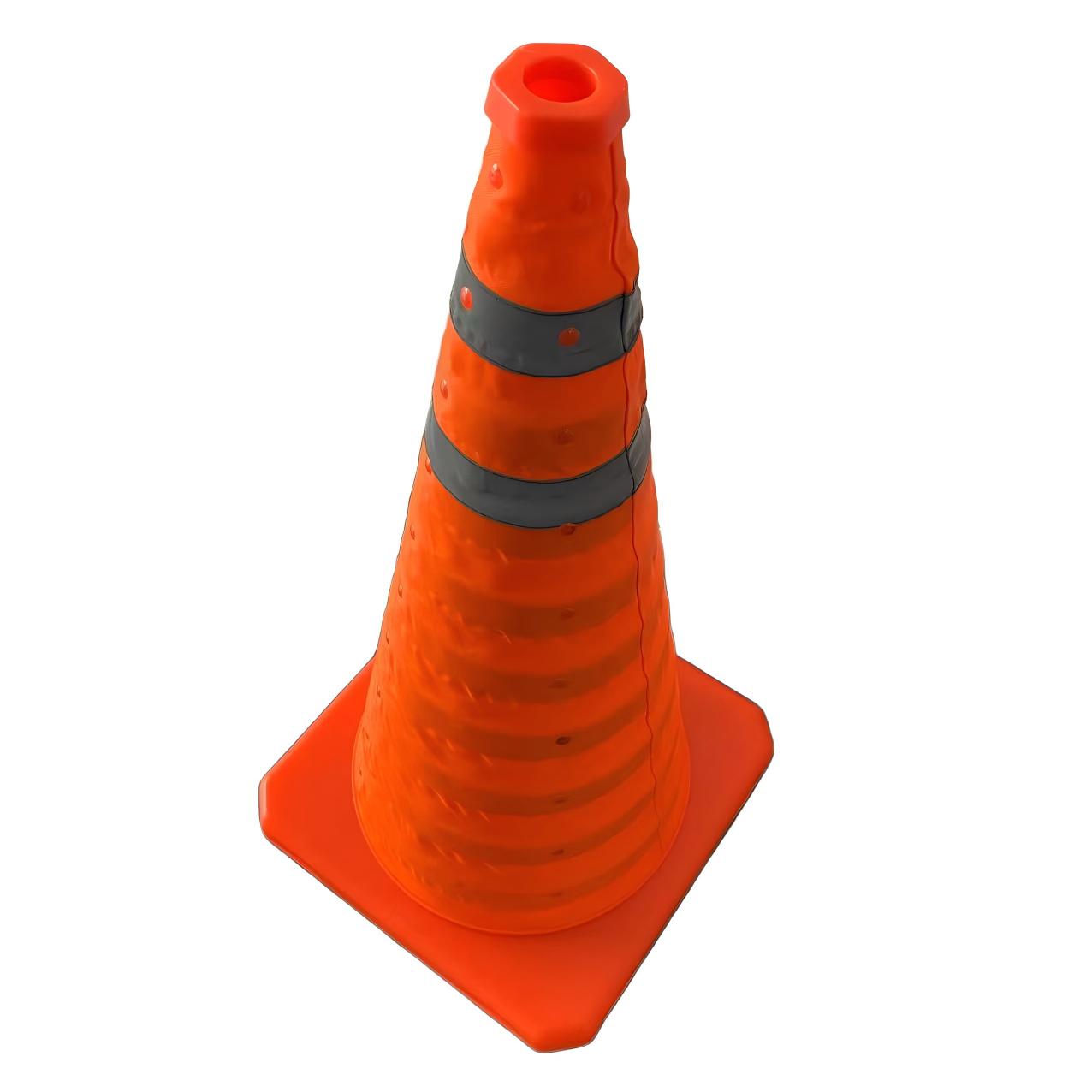 Der faltbare Verkehrskegel mit 60 cm Höhe ist die ideale Lösung zur schnellen und sicheren Kennzeichnung von Gefahrenstellen. Durch sein geringes Eigengewicht von nur 0,5 kg und die platzsparende Faltfunktion lässt er sich problemlos im Kofferraum, unter dem Autositz oder in Einsatzfahrzeugen verstauen.