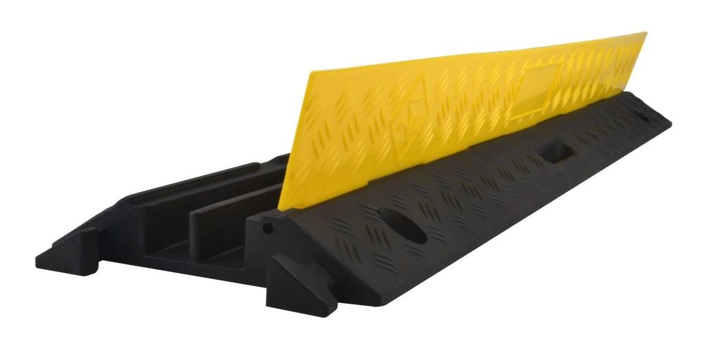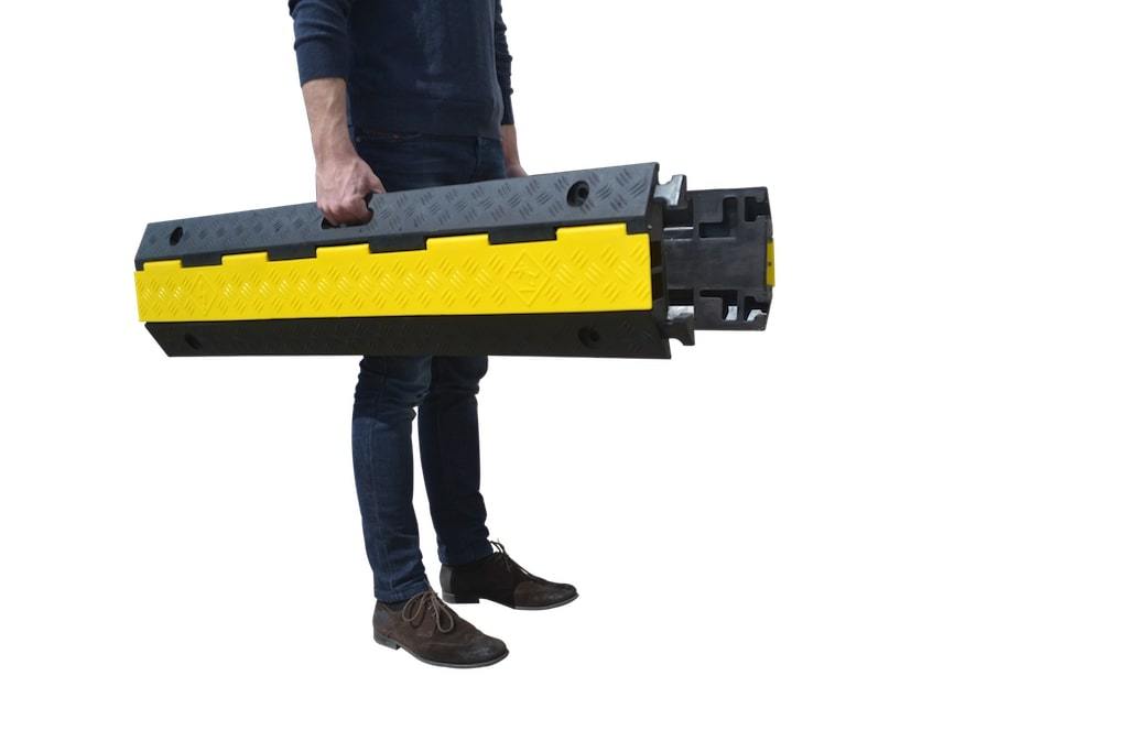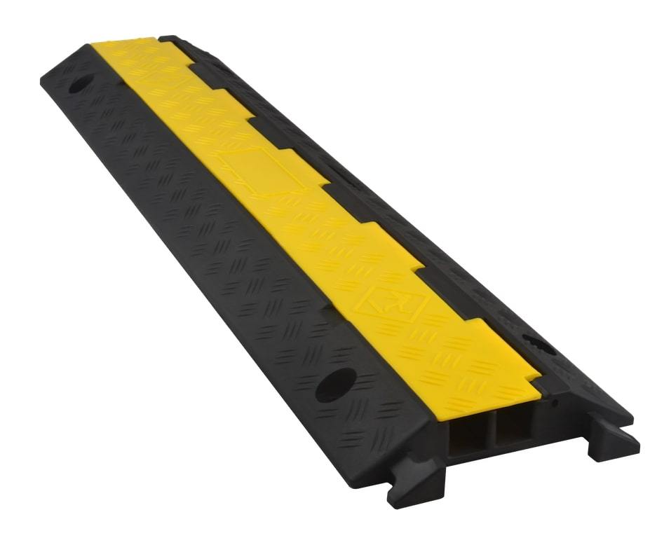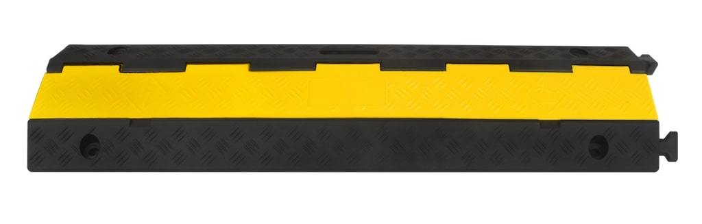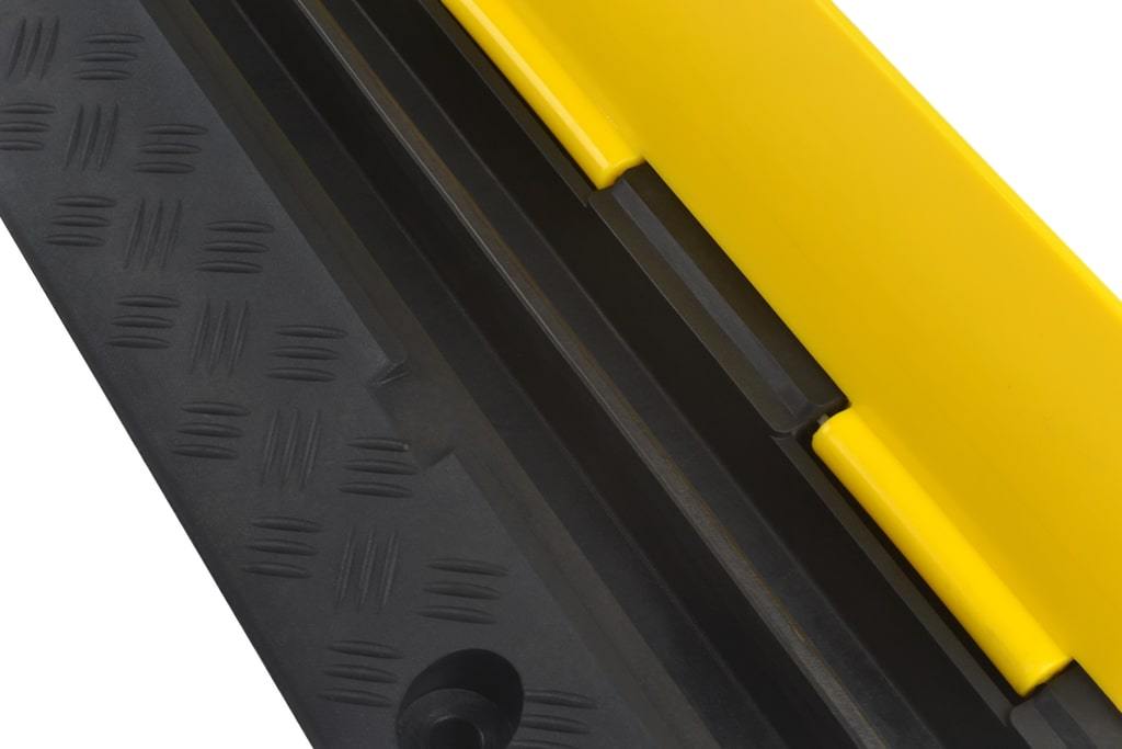 Diese steckbare 2-Kanal-Kabelbrücke ist eine robuste Lösung zum Schutz von Kabeln und Schläuchen in Bereichen mit hohem Verkehrsaufkommen. Aus einer speziellen, vulkanisierten Hartgummi-Mischung gefertigt, bietet sie eine herausragende Belastbarkeit von bis zu 12 Tonnen und ist ideal für den Einsatz auf Baustellen, in Lagerhallen, Einkaufszentren, auf Messen und Veranstaltungen. Der gelbe, bruchfeste Deckel aus Polyethylen sorgt für eine deutliche Signalwirkung und maximale Sicherheit.