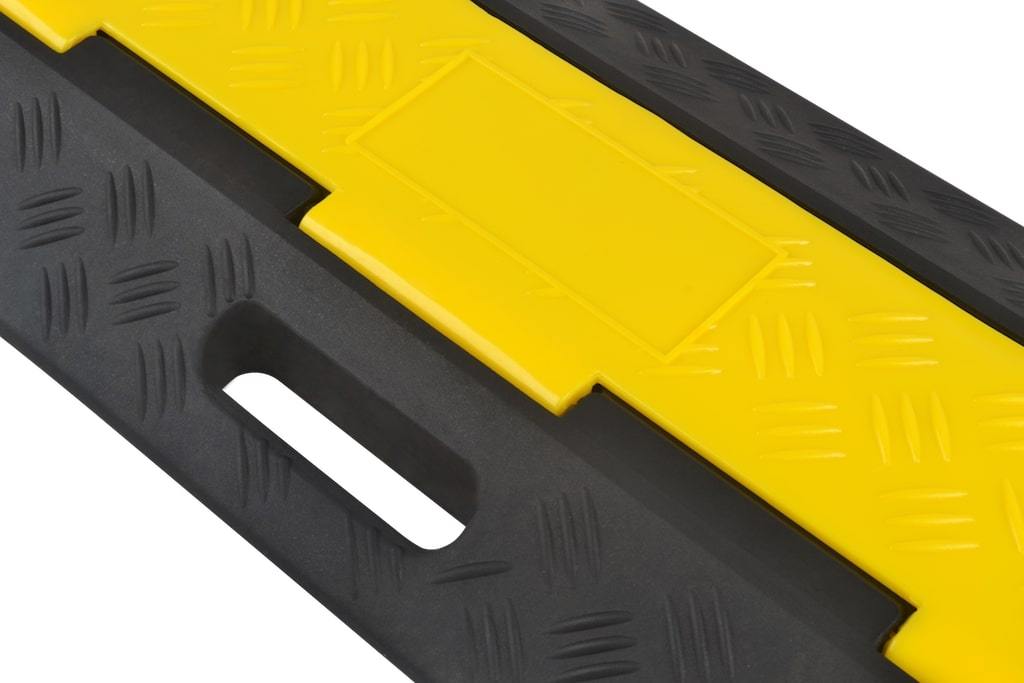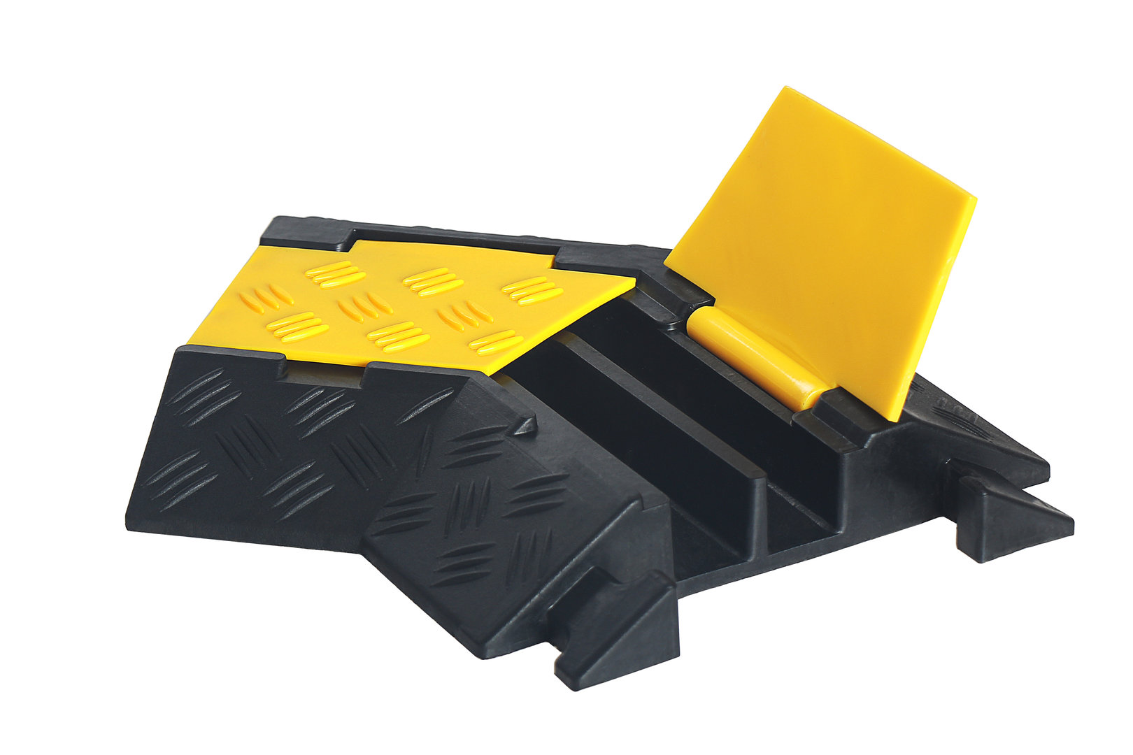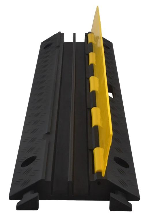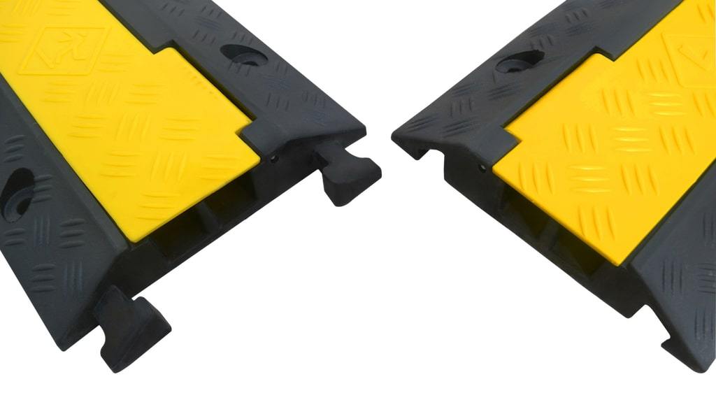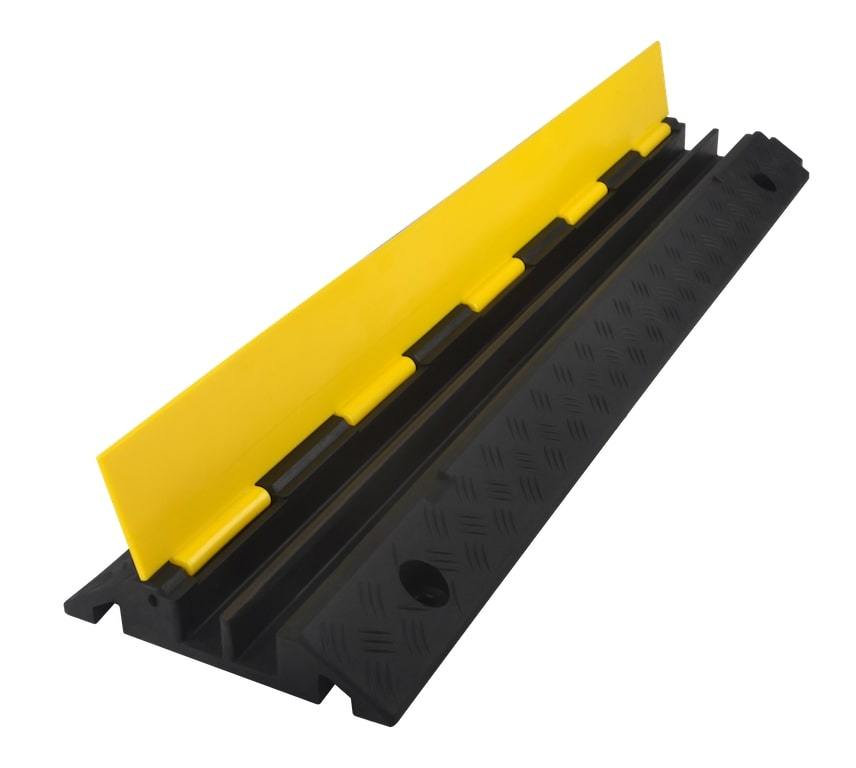 Diese steckbare 2-Kanal-Kabelbrücke ist eine robuste Lösung zum Schutz von Kabeln und Schläuchen in Bereichen mit hohem Verkehrsaufkommen. Aus einer speziellen, vulkanisierten Hartgummi-Mischung gefertigt, bietet sie eine herausragende Belastbarkeit von bis zu 12 Tonnen und ist ideal für den Einsatz auf Baustellen, in Lagerhallen, Einkaufszentren, auf Messen und Veranstaltungen. Der gelbe, bruchfeste Deckel aus Polyethylen sorgt für eine deutliche Signalwirkung und maximale Sicherheit.